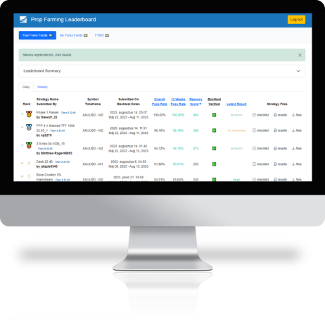 The Prop Farming Leaderboard houses all trading strategies created by our community of traders. The leaderboard is constantly being updated to ensure that we have strategies that work in both simulated backtest environments, as well as current live market conditions.